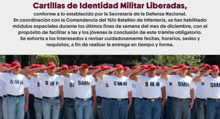 El Gobierno Municipal de Tampico les informa que están en los últimos días para recoger su Cartilla de Identidad Militar Liberada, conforme a lo establecido por la SEDENA.