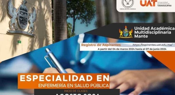 La Universidad Autónoma de Tamaulipas (UAT) mantiene disponible el registro de aspirantes a ingresar a la Especialidad en Enfermería en Salud Pública correspondiente al ciclo 2024-3, que será impartida por la Unidad Académica Multidisciplinaria Mante.