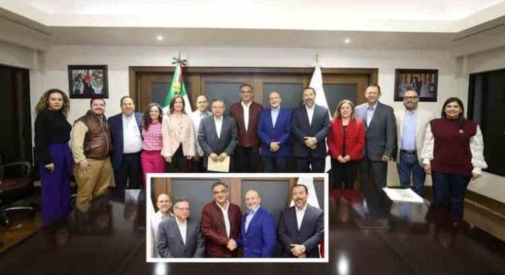 Ciudad Victoria, Tamaulipas. – El gobernador Américo Villarreal Anaya sostuvo una reunión de trabajo con el presidente del Consejo Nacional de la Industria Maquiladora y Manufacturera de Exportación (Index) Humberto Martínez Cantú, quien estuvo acompañado por dirigentes de este organismo de los municipios de Reynosa, Nuevo Laredo y Matamoros.