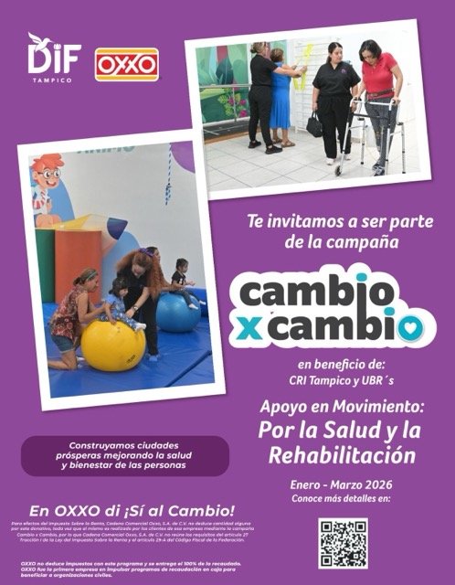 Con el objetivo de fortalecer los servicios de atención especializada para las personas con discapacidad, el Sistema DIF Tampico, en coordinación con la cadena comercial OXXO, pondrán en marcha la campaña de redondeo cambio x cambio «Por la Salud y la Rehabilitación».