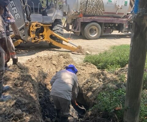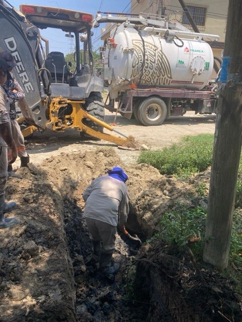 Respondiendo a un reporte sobre la formación de un socavón en una arteria vial de la colonia Las Fuentes, cuadrillas de trabajadores de este organismo procedieron a su reparación en la calle Cozumel, entre Cancún y Acapulco, cambiando de igual forma la línea general de drenaje de 10 pulgadas que resultó afectada.