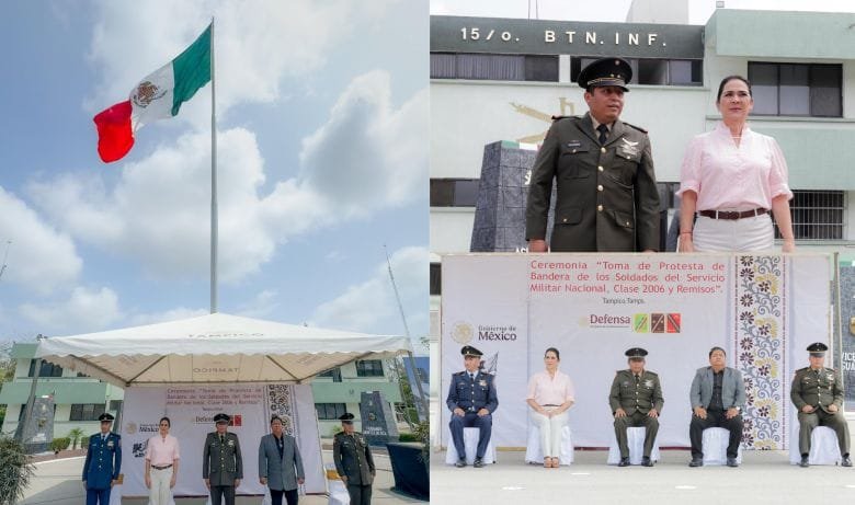 La Presidenta municipal de Tampico, Mónica Villarreal Anaya asistió a la ceremonia de protesta de Bandera por parte de los conscriptos del Servicio Militar Nacional Clase 2006 y remisos en las instalaciones del Quinceavo Batallón de Infantería.