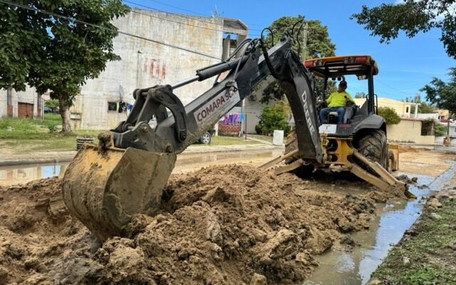 En ese contexto, se trabaja en la rehabilitación de una línea general de drenaje en la colonia Jesús Elías Piña, obra que se ejecuta en dos etapas: una primera de 70 metros lineales y una segunda de la misma extensión, sumando un total de 140 metros lineales.