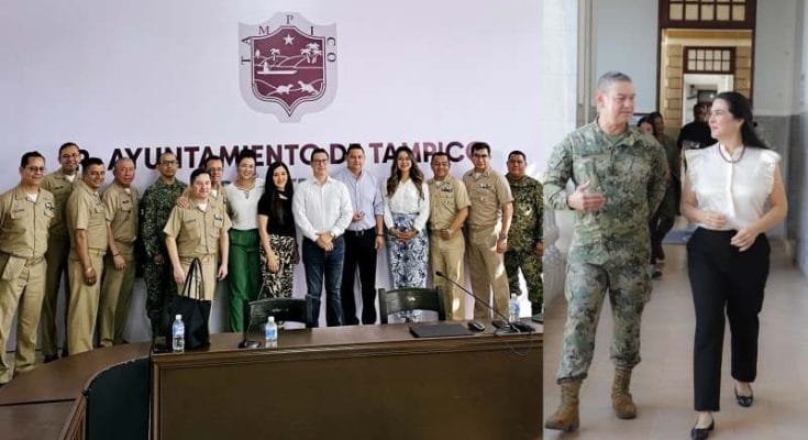 TAMPICO, TAM.- La Presidenta municipal, Mónica Zacil Villarreal Anaya encabezó este día la instalación de la mesa de trabajo entre el Ayuntamiento de Tampico y la Secretaría de Marina Armada de México, en el marco de las prácticas que desarrolla el Centro de Estudios Superiores Navales en su maestría en Seguridad Nacional.