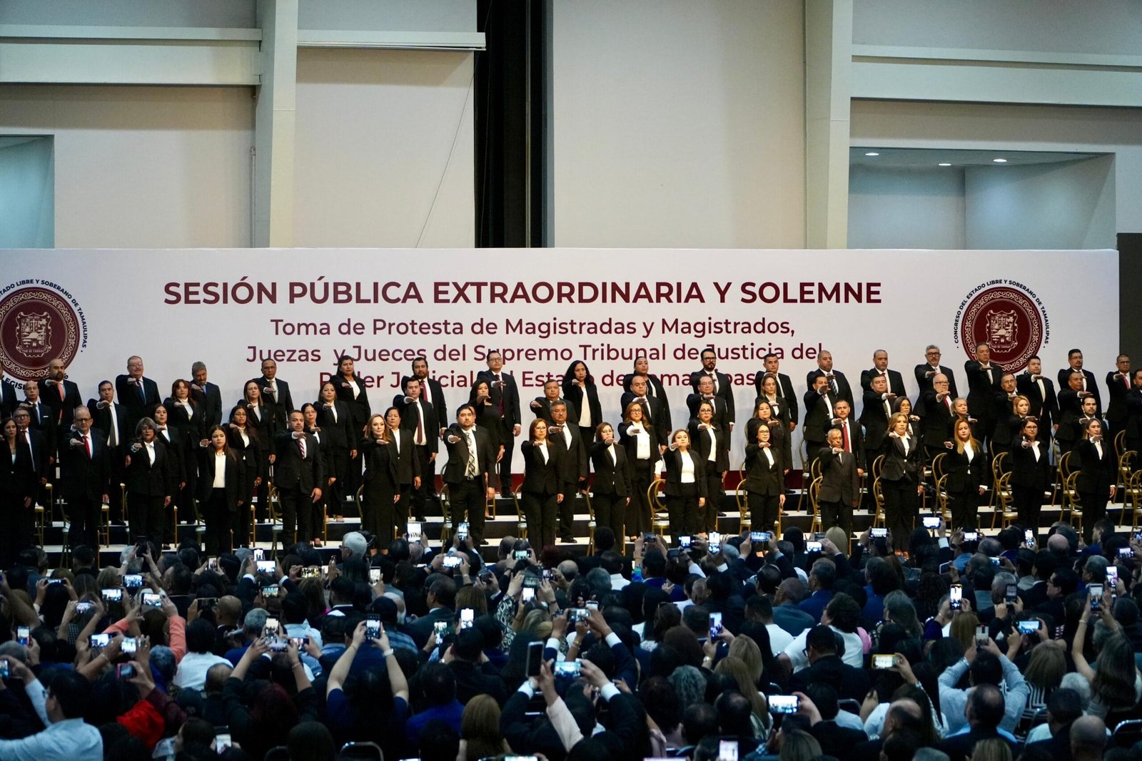 “Hoy vivimos un momento trascendental en Tamaulipas. Contar con los tres poderes surgidos de la voluntad ciudadana reafirma nuestra vocación democrática y el compromiso de construir un estado más justo, humano y cercano; un Estado, donde la impartición de la justicia, se rija por la transparencia, legalidad y honestidad de sus jueces, y magistrados”.