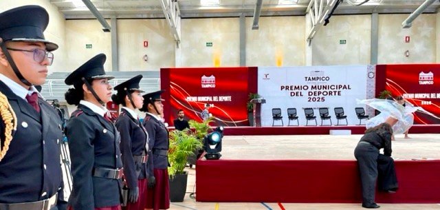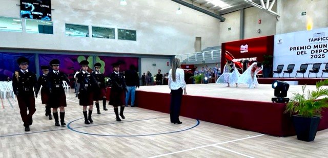 En el marco de la entrega del Premio Municipal del Deporte 2026, celebrada este 15 de enero en el Gimnasio Multidisciplinario de la Ciudad Deportiva, estudiantes de la escolta y banda de guerra del CETis No. 22tuvieron una destacada participación en la ceremonia de Honores a la Bandera.