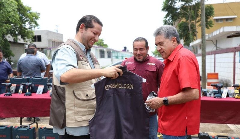 Durante la entrega estuvieron presentes el Dr. Carlos Arturo Juárez del Ángel, jefe de la Jurisdicción Sanitaria número 12; el Dr. Víctor Vicencio Luna, coordinador de Vectores de la misma jurisdicción; Romel Faustino Martínez Flores, secretario de Bienestar Social; y la Dra. Tania Lizeth Sosa García, coordinadora municipal de Salud.