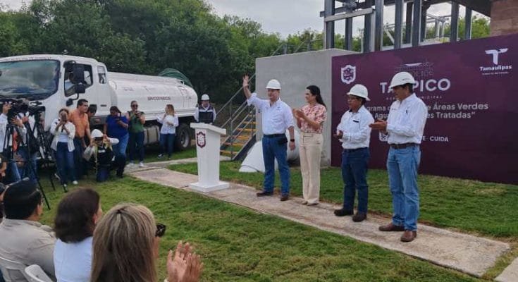 Agradeció el apoyo brindado por el Gobernador del Estado, Dr. Américo Villarreal Anaya, el secretario de Recursos Hidráulicos para el Desarrollo Social, Ing. Raúl Quiroga Álvarez y al gerente general de COMAPA SUR, Mtro. Francisco José González Casanova, para poder emprender este proyecto, mediante el cual se dotará de agua tratada para regar 117 parques que hay en Tampico, a través de 3 pipas que realizarán el recorrido programado.