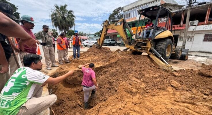 En el lugar, cuadrillas de trabajadores de COMAPA SUR llevaron a cabo la rehabilitación de 11 metros lineales del colector de 24 pulgadas de diámetro, lo que permitió restablecer el flujo adecuado y garantizar el correcto funcionamiento del sistema en esa zona.