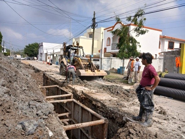 Las acciones se realizan en la calle 13 de Enero, entre las calles 35 y 36, en la colonia Heriberto Kehoe, donde actualmente la obra registra un avance del 50 por ciento, reflejando el progreso constante de los trabajos conforme a lo programado.