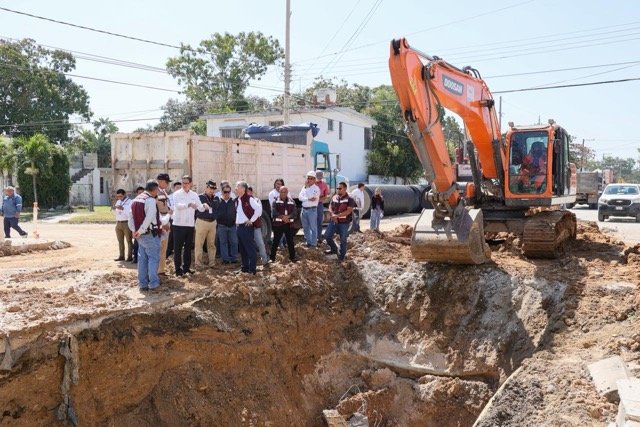 Acompañado del gerente general de la COMAPA SUR Mtro. Francisco José González Casanova, supervisó una intervención que forma parte de un proyecto mayor de aproximadamente 600 metros del colector principal. Esta obra cuenta con una inversión cercana a los 4.3 millones de pesos, la cual tiene como objetivo reducir las afectaciones, mejorar la seguridad vial y proporcionar mayor tranquilidad a las familias maderenses, aseguró Erasmo González.