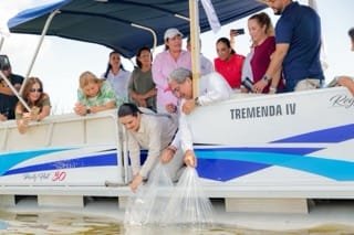 Reafirmando su compromiso con la preservación del ecosistema sur tamaulipeco, la alcaldesa Mónica Villarreal encabezó este día la siembra de siete mil juveniles de Lobina Negra en el Sistema Lagunario de Tampico, acción que contribuirá a fortalecer la población de esta especie acuática y al desarrollo de una pesca responsable.