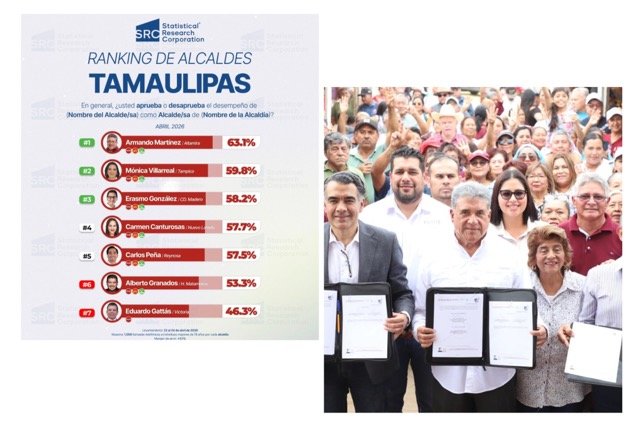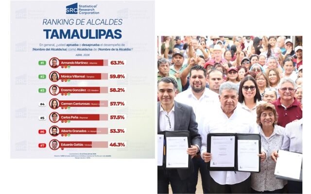 El alcalde de Altamira, Dr. Armando Martínez Manríquez, encabeza el ranking de aprobación ciudadana en Tamaulipas correspondiente al mes de abril de 2026, de acuerdo con la casa encuestadora Statistical Research Corporation (SRC), al alcanzar un 63.1 por ciento de respaldo.