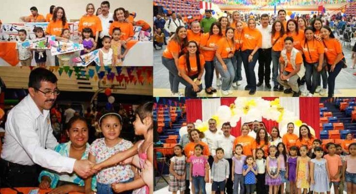 El rector de la Universidad Autónoma de Tamaulipas, MVZ Dámaso Leonardo Anaya Alvarado, y su esposa, Lic. Isolda Rendón de Anaya, pusieron en marcha los eventos del Día del Niño y de la Niña que la casa de estudios organiza para festejar a los hijos e hijas del personal universitario afiliado al Sindicato Único de Trabajadores de la UAT.