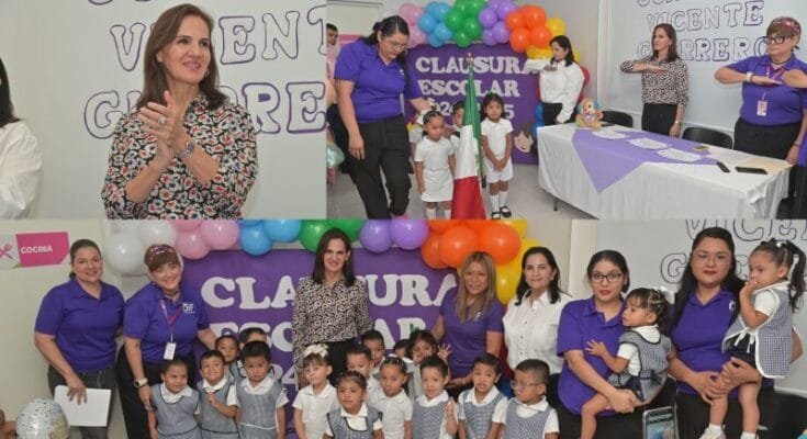 La Presidenta del Sistema DIF Tampico, Dra. Luz Adriana Villarreal Anaya, refrendó su compromiso con el cuidado y la formación inicial de la niñez, al encabezar la ceremonia de fin de Cursos de la Guardería Infantil Vicente Guerrero.