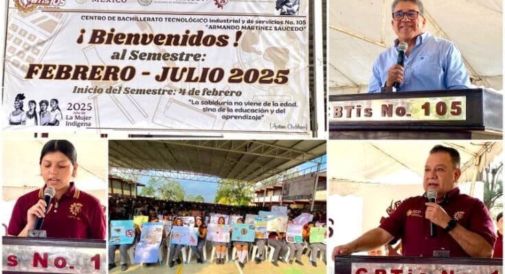 Ante padres de Familia, maestros, invitados especiales y jóvenes del plantel, dio inicio formal de las actividades del nuevo semestre escolar, febrero-Julio 2025 en el Centro de Bachilleres, tecnológicos y de Servicio 105 de Altamira “Armando Martínez Saucedo”