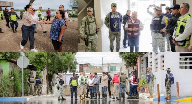 La alcaldesa porteña, acompañada por los titulares de las áreas de Protección Civil, José Antonio Marín Flores y Servicios Públicos, Ricardo Mora Alvarado, así como por representantes de la Guardia Nacional, Sedena, Bomberos, Protección Civil regional y Tránsito y Vialidad, sostuvo que su administración se mantiene alerta de las condiciones meteorológicas y del escurrimiento de las corrientes río arriba que puedan generar afectaciones en sectores colindantes a los ríos Pánuco y Tamesí.