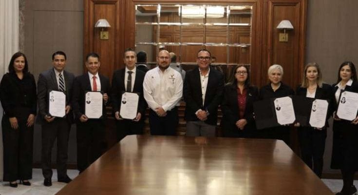 Ciudad Victoria, Tamaulipas.- El gobernador Américo Villarreal Anaya entregó fiat de notarios públicos a seis profesionistas, quienes ejercerán sus funciones en diversos distritos judiciales del estado, luego de aprobar el examen correspondiente.
