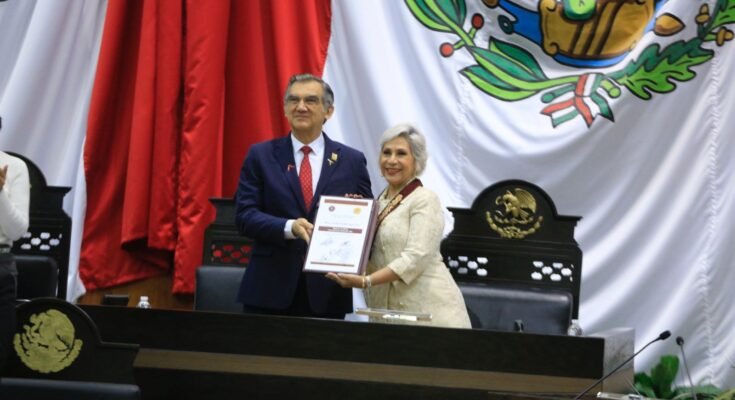 “Nos sentimos muy orgullosos de usted, de su obra, de su ejemplo, de su determinación para brillar y de llevar con usted a cada escenario, a cada aula, a cada recinto cultural, a cada estreno, la identidad y el orgullo de ser tamaulipeco”, expresó el gobernador en la ceremonia celebrada en la sede del Congreso Local.