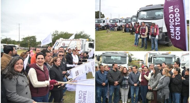 Cumpliendo su compromiso de fortalecer las acciones que contribuyan a brindar un eficiente servicio de limpieza y recolección de basura, la Presidenta municipal Mónica Villarreal Anaya entregó este día, seis nuevos camiones de recolectores de basura, que se suman a la fuerza operativa del Ayuntamiento de Tampico.