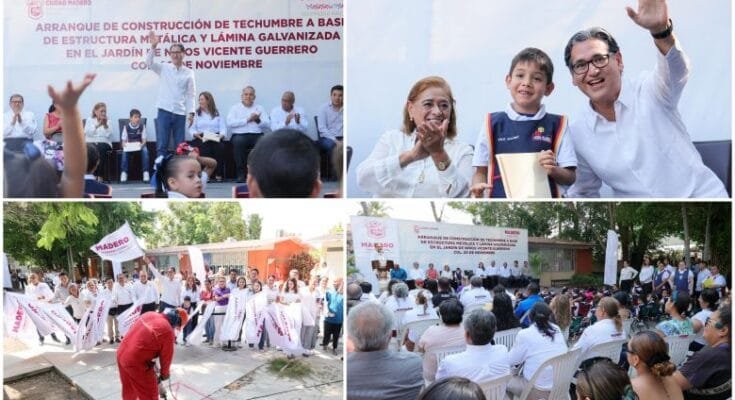 El Gobierno de Ciudad Madero prioriza el bienestar y la seguridad de las niñas y niños; en este contexto, el presidente municipal, Erasmo González Robledo, puso en marcha la construcción de una techumbre más de estructura metálica y lámina galvanizada en el Jardín de Niños “Vicente Guerrero”, ubicado en la colonia Jardín 20 de Noviembre. Lo que representa una acción más como parte de un amplio programa de infraestructura educativa.