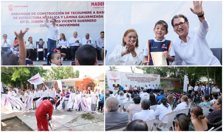 El Gobierno de Ciudad Madero prioriza el bienestar y la seguridad de las niñas y niños; en este contexto, el presidente municipal, Erasmo González Robledo, puso en marcha la construcción de una techumbre más de estructura metálica y lámina galvanizada en el Jardín de Niños “Vicente Guerrero”, ubicado en la colonia Jardín 20 de Noviembre. Lo que representa una acción más como parte de un amplio programa de infraestructura educativa.