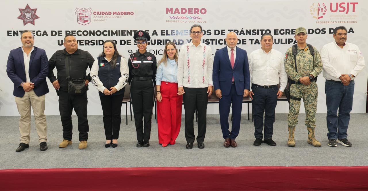 El presidente municipal Erasmo González Robledo reconoció de manera histórica la incorporación de 30 nuevos agentes a la dirección de Tránsito; esto tras haber concluido su formación profesional en la Universidad de Seguridad y Justicia de Tamaulipas. Destacó su decisión de prepararse y asumir con seriedad el compromiso de servir a la comunidad. Ciudad Madero los recibe con orgullo, incorporándolos a un entorno que valora la profesionalización, la seguridad y una nueva perspectiva del servicio público.