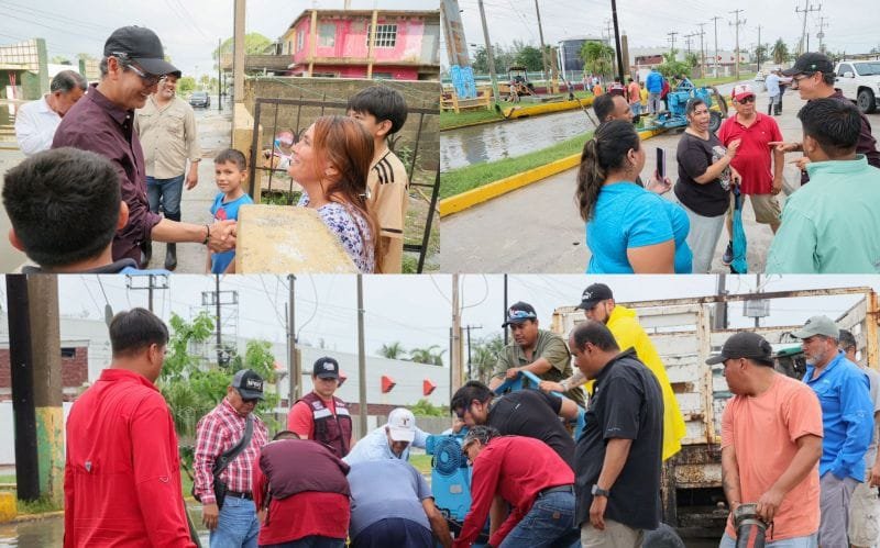 A través del diálogo con familias afectadas por las precipitaciones pluviales, se comprometió a darle continuidad a las acciones que se realizan como la limpieza de canales que conectan con el 7 y Medio; el Cangrejo 1 y 2, que desfogan al rio Panuco. Asimismo, ordenó acciones para liberar los encharcamientos al interior de la escuela Melchor Ocampo, esto a petición de autoridades de la institución educativa a fin de no afectar las actividades escolares.