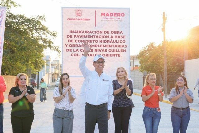 Con una inversión cercana a los 2.8 millones de pesos, el presidente municipal Erasmo González Robledo, acompañado de su esposa Dunia Marín Acuña, presidenta del sistema DIF, así como de síndicos y regidores, inauguró una nueva calle de concreto hidráulico en la colonia Hidalgo Oriente. Durante el evento, las vecinas y vecinos recibieron el reconocimiento de las autoridades municipales por su confianza en el gobierno de la ciudad, destacando la importancia del trabajo en equipo para mejorar la infraestructura vial.