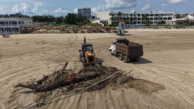 Explicó que dichas acciones son ejecutadas por cuadrillas de la Dirección Operativa de Playa, integradas por 18 trabajadores, apoyados con dos camiones de volteo y dos retro excavadoras. Asimismo, la Dirección de Servicios Públicos colabora en la limpieza del Boulevard Costero, además se realiza el mantenimiento de jardineras, guarniciones, banquetas y en las labores diarias de recolección de basura.