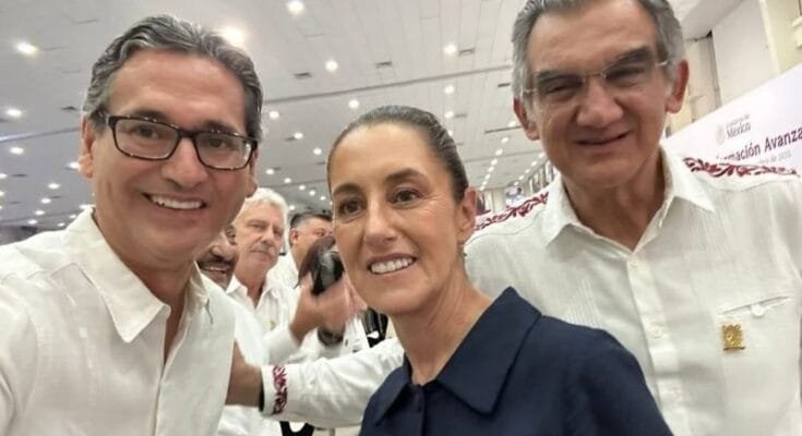 Erasmo González tras un diálogo con la presidenta de la república Dra. Claudia Sheinbaum Pardo, junto al Gobernador Dr. Américo Villarreal Anaya, también hizo un amplio reconocimiento a la transformación de Tamaulipas, en vivienda, salud, el desarrollo, el campo, el bienestar social, entre muchas acciones más.