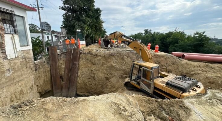 Las labores consistieron en la sustitución de 30 metros lineales de tubería de 24 pulgadas de diámetro, a una profundidad aproximada de 6 metros, lo que representó una intervención de alta complejidad técnica. De este total, 12 metros corresponden a la etapa más reciente de la obra, los cuales se suman a un tramo previo de 18 metros que ya había sido rehabilitado, reforzando de manera integral la conducción de aguas pluviales en la zona.