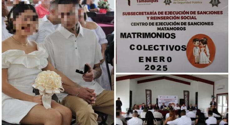 Matamoros, Tamaulipas.- En una ceremonia colectiva, 13 parejas conformadas por personas privadas de la libertad (PPL) formalizaron su unión dentro del Centro de Ejecución de Sanciones (CEDES) de Matamoros.