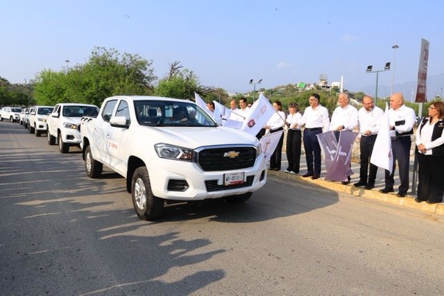 Al término de la ceremonia de honores a la bandera y acompañado por el secretario de Salud, Vicente Joel Hernández Navarro, y el titular de la COEPRIS, Mario Rebolledo Urcádiz, el mandatario estatal hizo la entrega oficial de 10 unidades tipo pick-up, así como 3 vehículos sedan, que agilizarán las labores y acciones preventivas de esta Comisión.