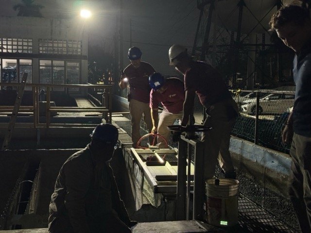 Durante estas labores, se instalaron cuatro compuertas en los sedimentadores de entrada y salida, con la finalidad de regular el flujo del agua y facilitar futuros trabajos de mantenimiento en la planta, afectando en la menor medida posible el servicio.