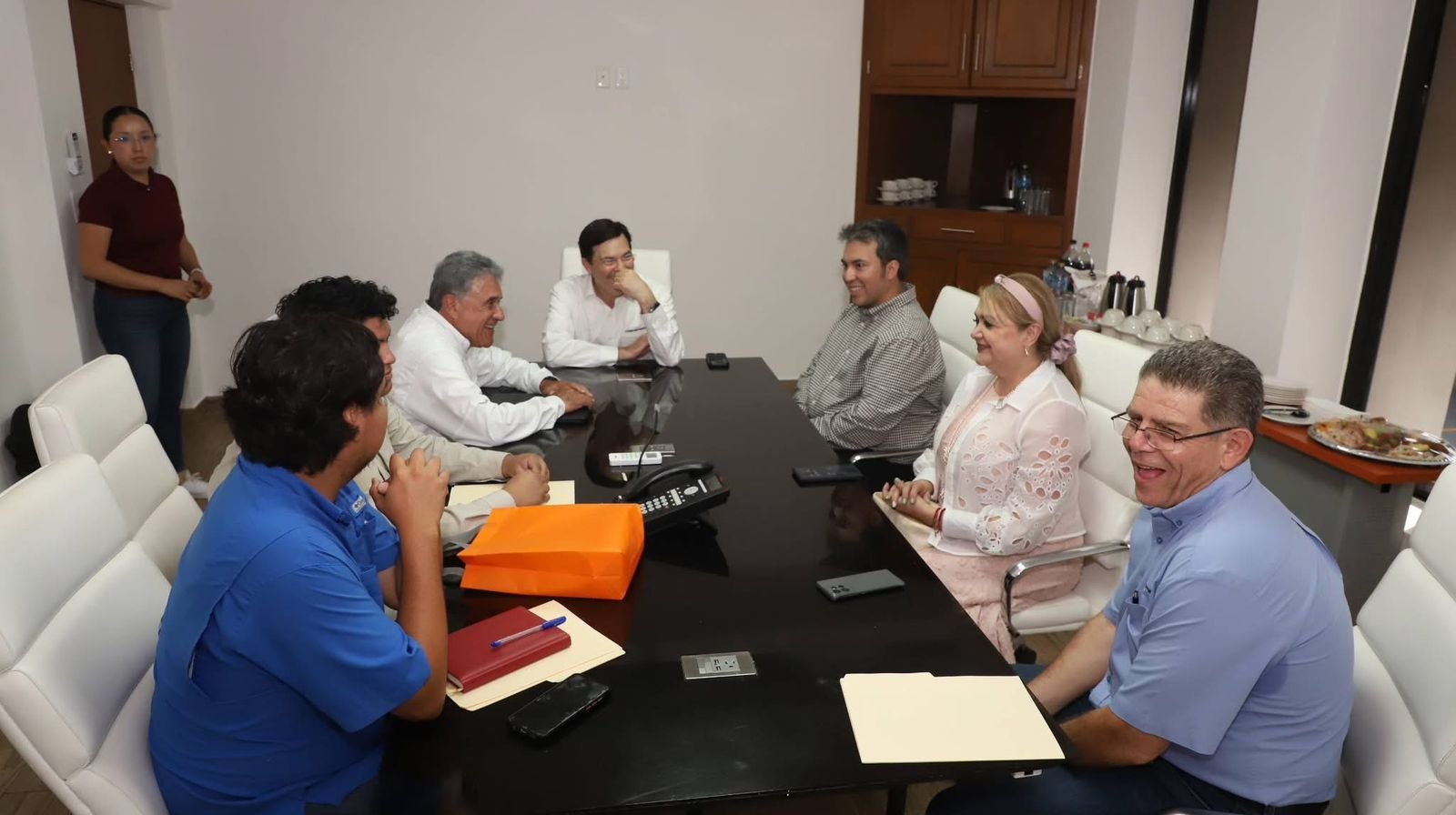 Posteriormente, el presidente municipal sostuvo una reunión con el Director General del Grupo Transpaís, el Ing. Abelardo Osuna Morales, con quien dialogó sobre proyectos y estrategias orientadas al fortalecimiento del sistema de transporte en el municipio.