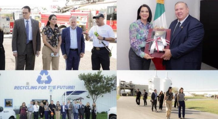 Posteriormente, Mónica Villarreal y comitiva estuvieron en el Centro de Reciclaje de la Ciudad (City of Mc Allen Recycling Center) donde fueron recibidos y guiados por el City Manager Isaac Tawil; el Director de Puentes Internacionales, Juan Olaguibel y la titular de Asuntos Internacionales de Mc Allen, Daniela Plata.