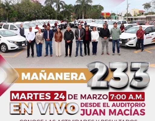 El Gobierno Municipal de Altamira anunció la transmisión en vivo de la Mañanera número 233, la cual se llevará a cabo este martes 24 de marzo a las 7:00 de la mañana, desde el Auditorio Juan Macías.