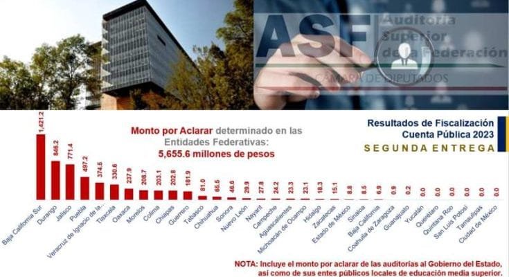 Este año, de la revisión a entidades federativas, se determinó un monto por aclarar de más de 5,655 mdp distribuidos en los 28 estados que resultaron con un posible daño patrimonial. Sin embargo, el estado de Tamaulipas, junto con la Ciudad de México, Querétaro, San Luis Potosí, Quintana Roo y Yucatán, no tuvieron montos observados, indicó el auditor superior de la Federación, quien expresó: “obviamente les dijimos enhorabuena”.