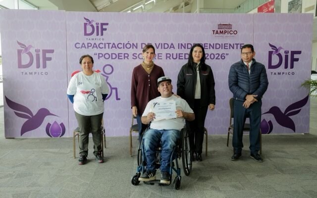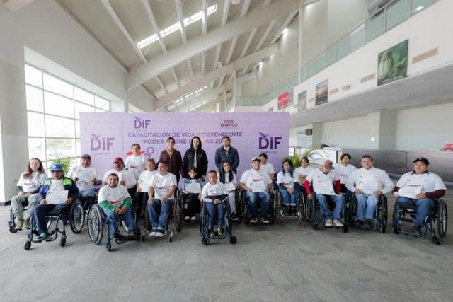 La presidenta municipal de Tampico, Mónica Villarreal Anaya, y la titular del Sistema DIF Tampico, Luz Adriana Villarreal Anaya, encabezaron la clausura del Curso de Vida Independiente: “Poder sobre Ruedas”, que tuvo como propósito capacitar a personas con discapacidad motriz para lograr mayor autonomía e independencia.
