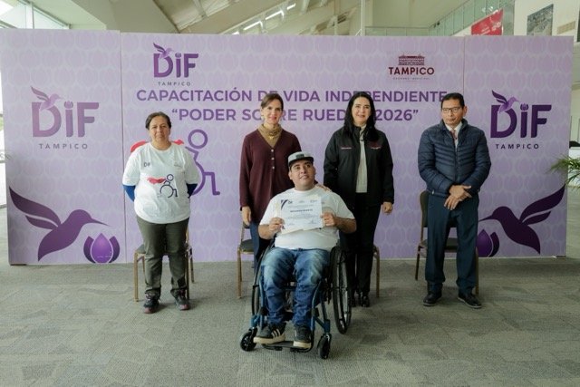 La presidenta municipal de Tampico, Mónica Villarreal Anaya, y la titular del Sistema DIF Tampico, Luz Adriana Villarreal Anaya, encabezaron la clausura del Curso de Vida Independiente: “Poder sobre Ruedas”, que tuvo como propósito capacitar a personas con discapacidad motriz para lograr mayor autonomía e independencia.
