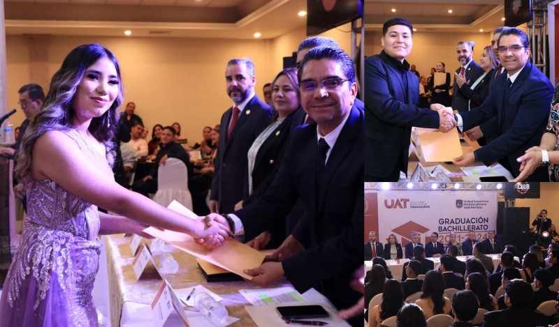 En un significativo evento que reunió a integrantes de la comunidad universitaria y padres de familia, la Universidad Autónoma de Tamaulipas (UAT) llevó a cabo la ceremonia de graduación de 270 estudiantes que concluyeron su educación del nivel medio superior en la Unidad Académica Multidisciplinaria Valle Hermoso (UAMVH).