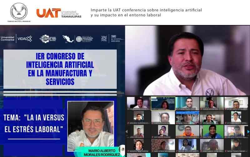 Con su ponencia titulada «La inteligencia artificial contra el estrés laboral”, el Dr. Mario Alberto Morales Rodríguez, docente de la Universidad Autónoma de Tamaulipas, participó en el Primer Congreso de Inteligencia Artificial en la Manufactura y Servicios, organizado por la Universidad Continental de Perú.