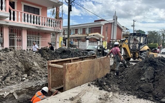 Con un avance aproximado del 60 por ciento, continúan los trabajos de reparación de la línea general de drenaje sanitario que ejecuta COMAPA Sur en la calle Jiménez, entre Emiliano Zapata y Benito Juárez, en la colonia Morelos del municipio de Tampico.