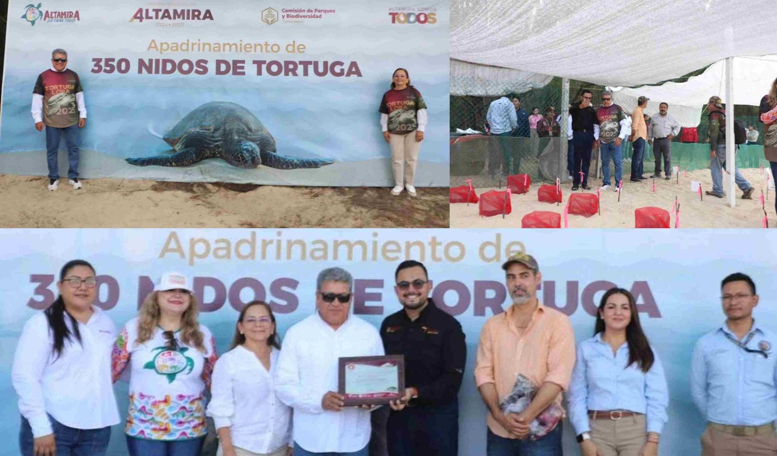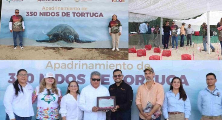 En un esfuerzo por fortalecer la conservación ambiental y avanzar hacia un Altamira más sostenible, el alcalde Dr. Armando Martínez Manríquez apadrinó, junto a su esposa, la presidenta del DIF Municipal, Rossy Luque de Martínez, un total de 350 nidos de tortuga lora en Playa Tesoro, lo que representa la protección de más de 40 mil crías de esta especie en peligro de extinción.