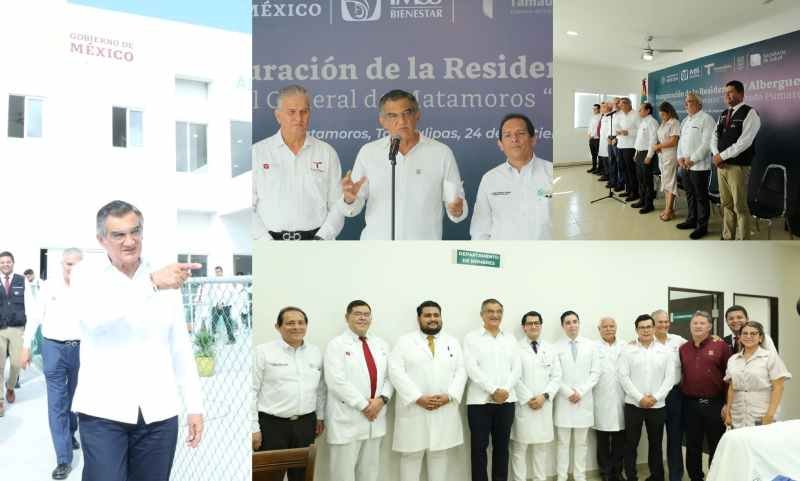 Al referirse al mejoramiento de la infraestructura hospitalaria, puso como ejemplo la conclusión del Hospital General IMSS-Bienestar de Matamoros «Dr. Alfredo Pumarejo», con un costo de mil 64 millones de pesos, que ahora cuenta también con un albergue y espacio para residentes, que contribuirá a la formación de personal médico.