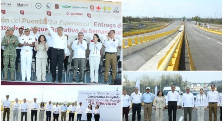 Altamira, Tamaulipas. – El gobernador Américo Villarreal Anaya inauguró el puente «La Esperanza», una obra que permaneció en el abandono por casi 15 años y aseguró que esta construcción se asemeja al futuro de Tamaulipas porque tiene «bases sólidas y firmes».
