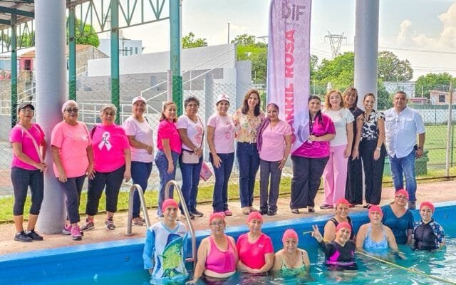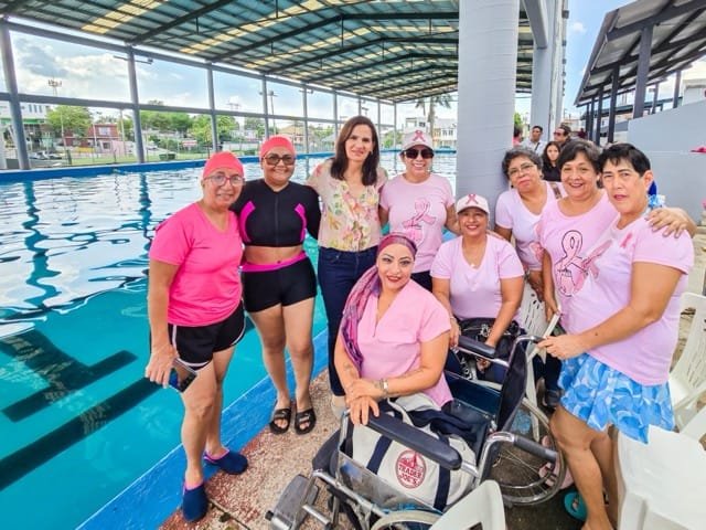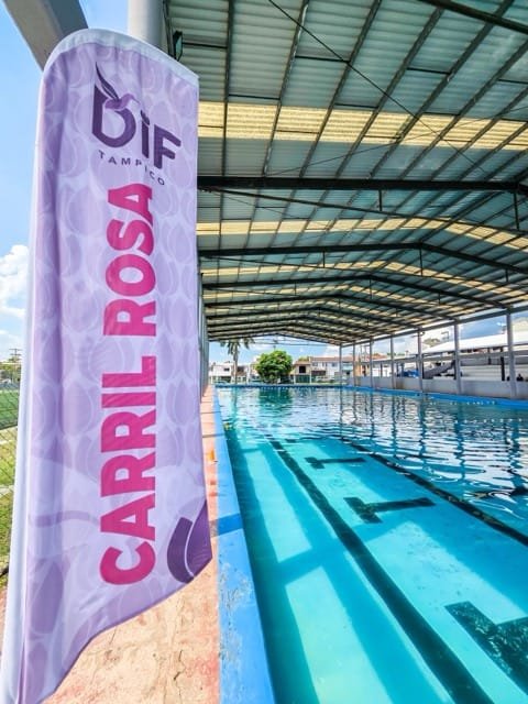 Con la finalidad de ofrecer espacios exclusivos para la rehabilitación física y emocional de las personas con enfermedad o antecedentes oncológicos, la Presidenta del Sistema DIF Tampico, Dra. Luz Adriana Villarreal Anaya inauguró, este día, ‘El Carril Rosa’, en la alberca de la Unidad Deportiva de Puertas Coloradas.