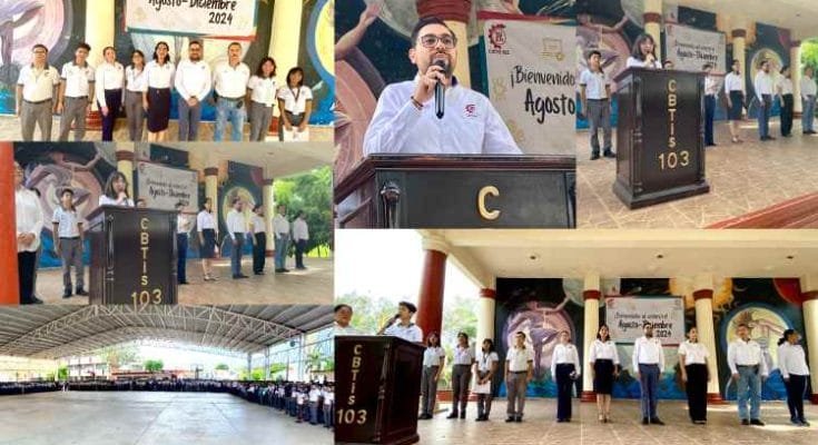 El CBTis 103 dió inicio al nuevo ciclo escolar, donde recibió a su comunidad estudiantil, entre ellos a una nueva generación de alumnos, durante una ceremonia cívica, que se realizó en el foro del plantel.