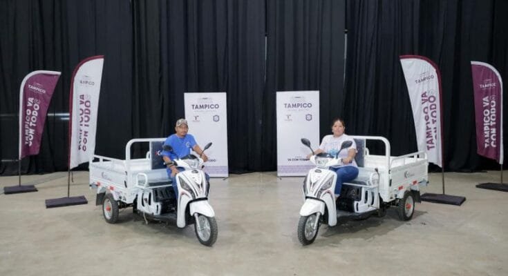 Cumpliendo el compromiso de atender y reducir el maltrato animal, mediante alternativas que no afecten la actividad productiva de la población, la Alcaldesa Mónica Villarreal Anaya llevó a cabo la entrega de dos tricimotos de carga a trabajadores carretoneros, a fin de sustituir las rústicas unidades de tracción animal.